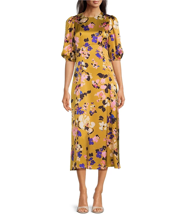 En Saison Marleigh Collared Short Puff Sleeve Midi Shirt Dress