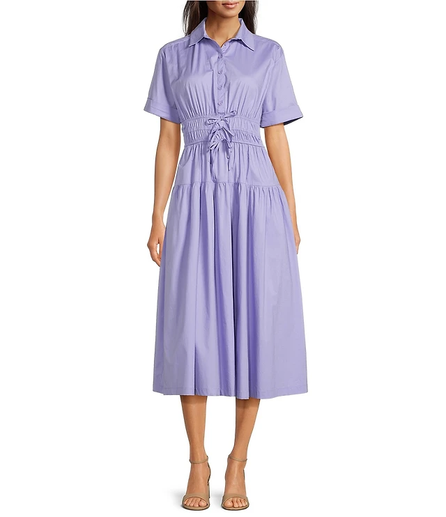 Moda Tara Short Sleeve Button Front Poplin Shirt Midi Dress