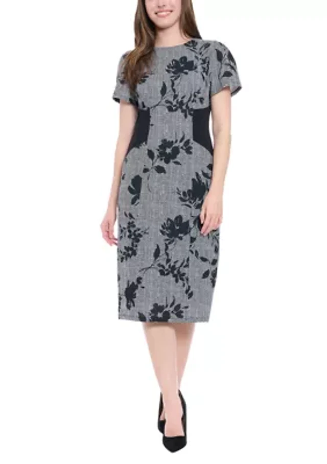 Moda Tara Short Sleeve Stretch Knit Crew Neck Midi Sheath Dress