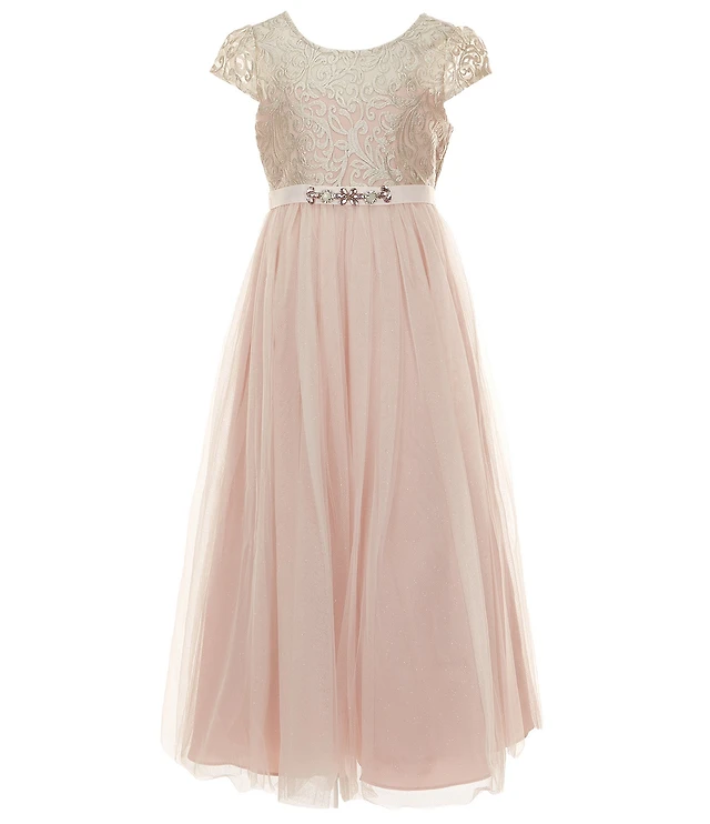 Livia Jolie by Le Bos Short Sleeve Illusion Crew Neck 3D Mesh Floral Embroidered Mesh Maxi Dress