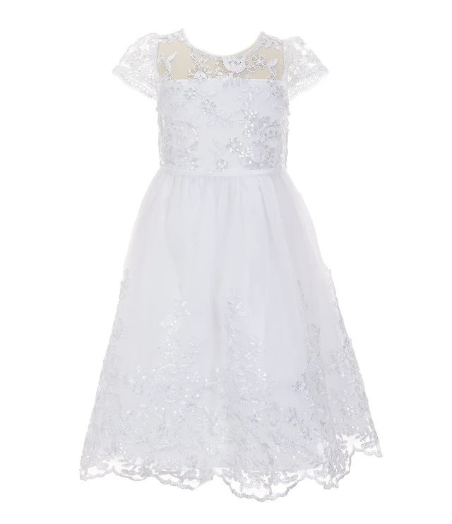 Poppies and Roses Big Girls Short-Sleeve Bow Motif Bodice/Pleated-Skirted Fit-And-Flare Dress