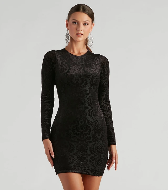 Dress the Population Sonia Sweetheart Neck Long Sleeve Midi Dress