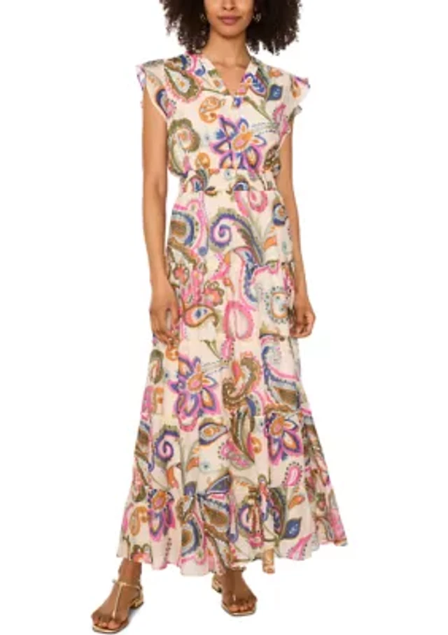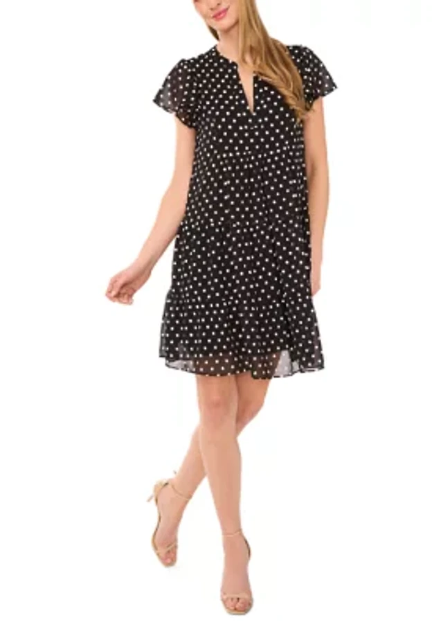 Vince Camuto Jacquard Metallic V-Neck Cap Sleeve A-Line Dress