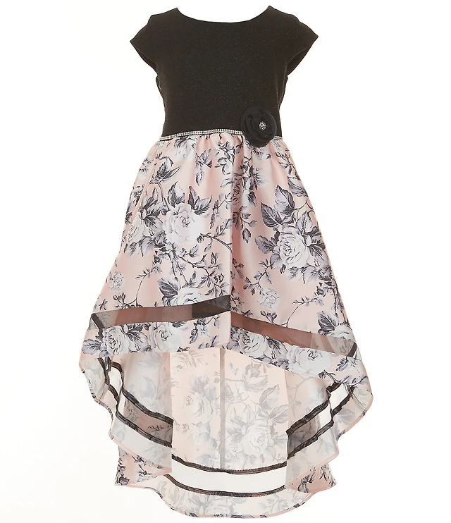 Bonnie Jean Big Girls Short-Sleeve Sparkle-Knit/Toile Mikado High-Low-Hem Fit-And-Flare Dress