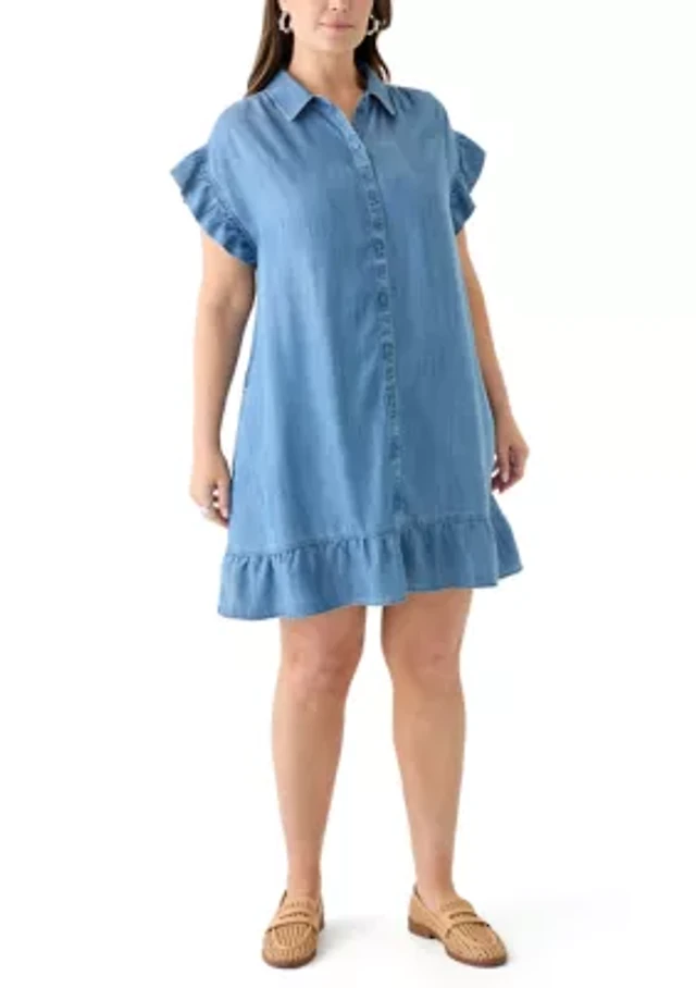 Lauren Ralph Lauren Denim Shift Johnny Collar Short Sleeve Shirt Dress