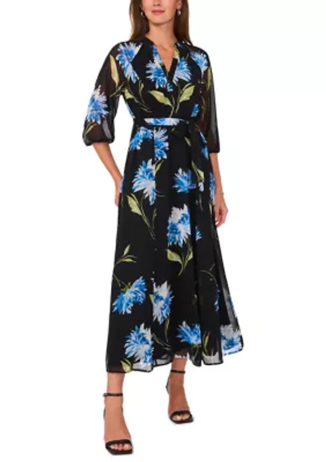 Petite Long Sleeve Floral Midi Dress