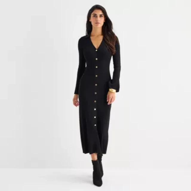 Worthington Womens Long Sleeve Maxi Dress