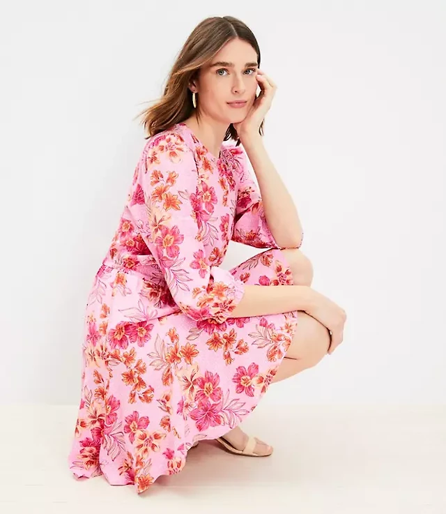 Girls 7-16 Flutter Sleeve Floral Print Tiered Drop Waist Dress