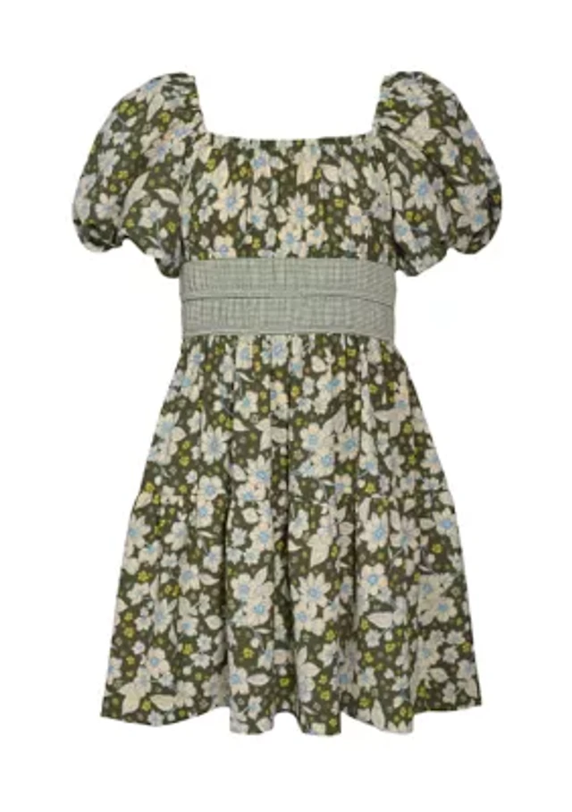 Poppies and Roses Big Girls Bubble-Sleeve Floral Printed Midi Dress