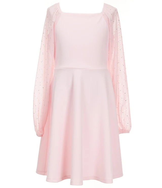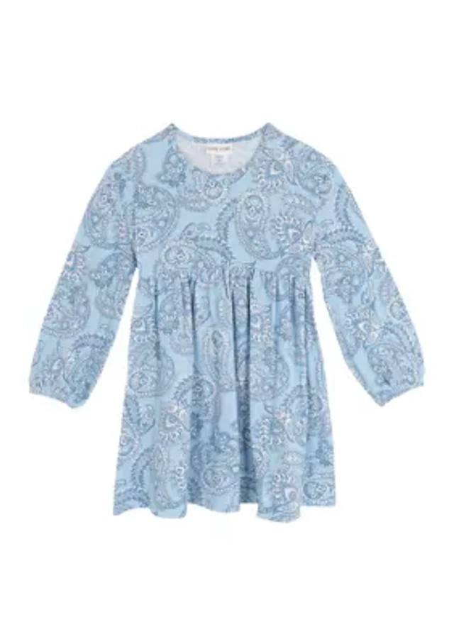Printed Long-Sleeve Fit and Flare Dress for Girls