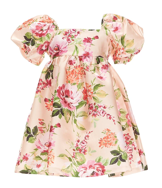 Bonnie Jean Little Girls Puff-Sleeve Floral Mikado Empire-Waist Dress