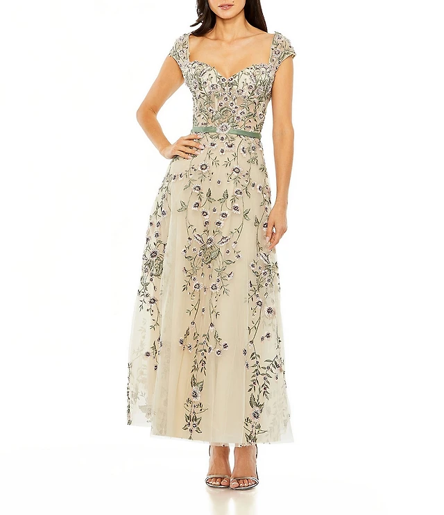 Mac Duggal Long Sleeve Floral Print Ruffle Dress
