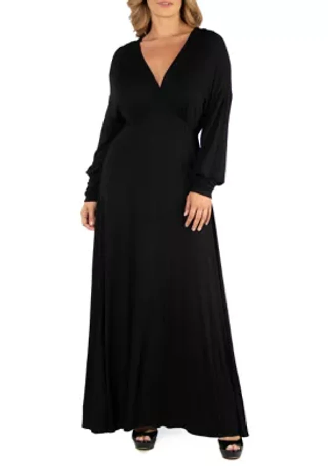 Women's Long Sleeve V-Neck Satin Tier Maxi Dress
