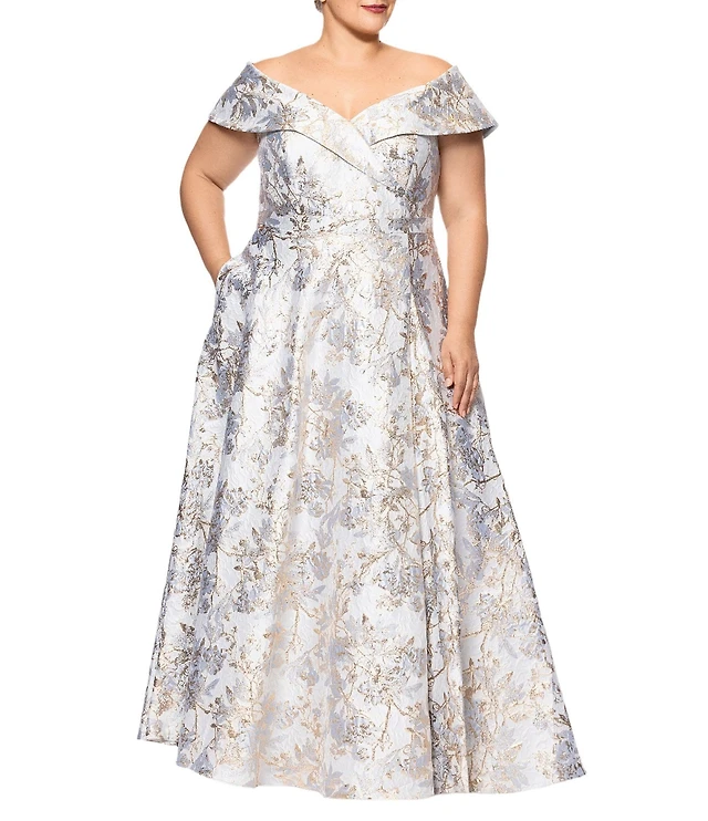 Betsy & Adam Long Sleeve Floral Print Brocade Shirt Dress