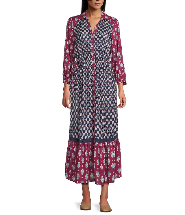 Willow Glenn Womens 3/4 Sleeve Leaf Fit + Flare Dress