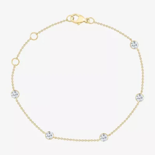 Made in Italy Cubic Zirconia and Diamond-Cut Bead Station Bracelet in 10K Solid Gold Chain and 10K Hollow Gold Beads - 8"