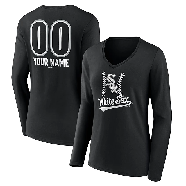 Women's Black Chicago White Sox Monochrome Personalized Name & Number Long Sleeve V-Neck T-Shirt