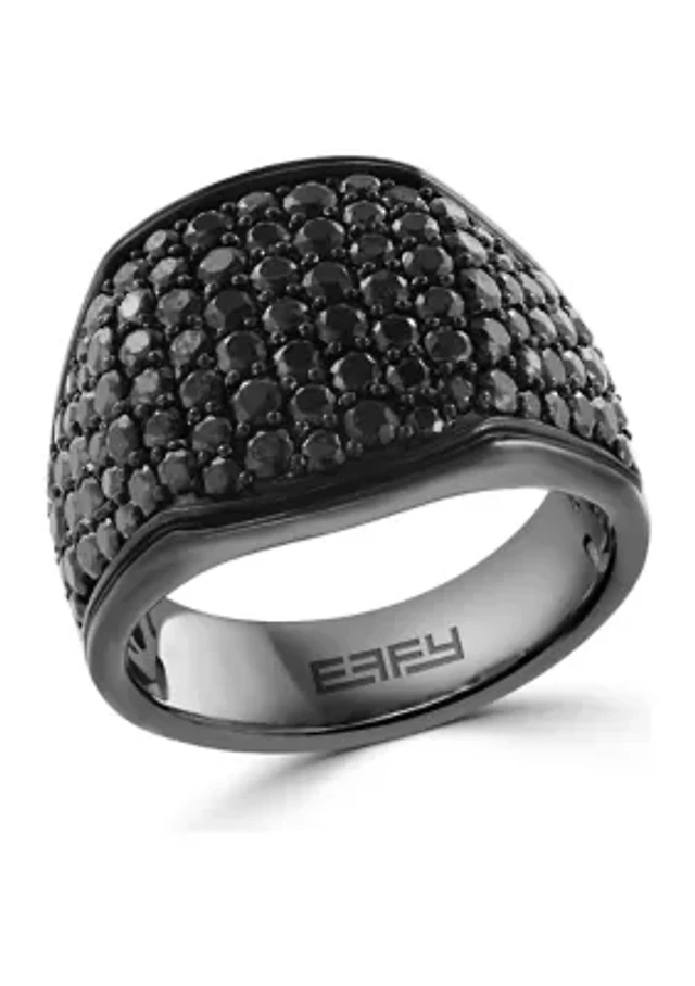Black Spinel Square Cluster Ring in Sterling Silver - Size 10