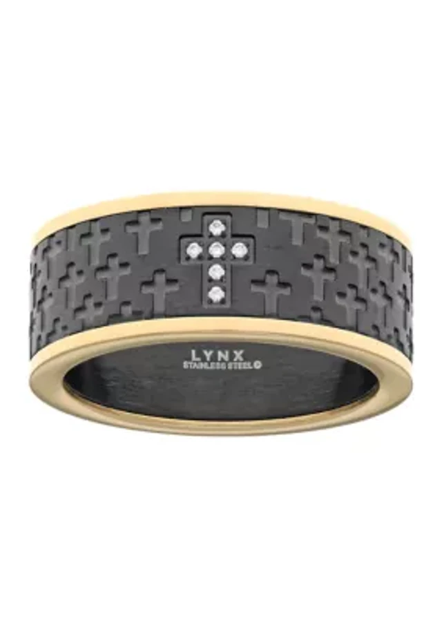 Black and White Cubic Zirconia Crossover Ring in Sterling Silver - Size 7