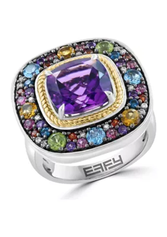 Oval Amethyst and Diamond Accent Tri-Sides Ring in 10K Rose Gold