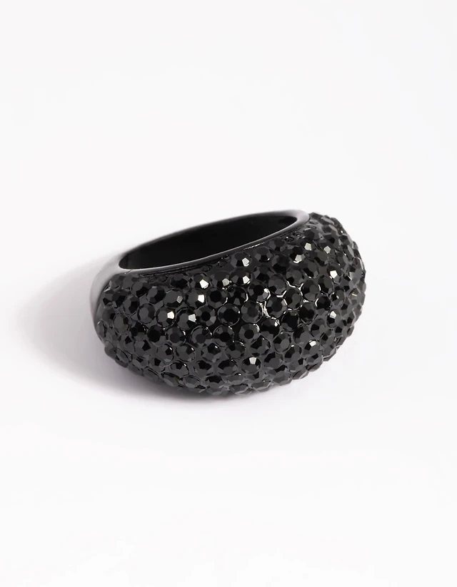 Black Wide Diamante Ring