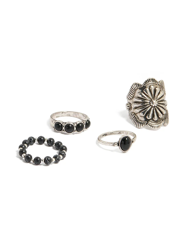 Mixed Metal Hammered & Twisted Rings 5-Pack
