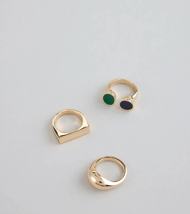 Mixed Metal Plated Chubby Organic Rings 3-Pack