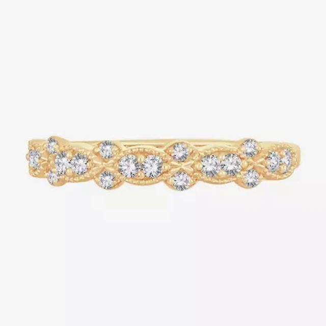 Classic Collection Womens 2MM 1/2 CT. T.W. Natural White Diamond 10K Gold Wedding Band
