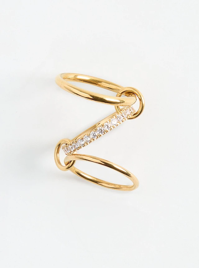 Gold Cubic Zirconia Statement Double Stack Ring