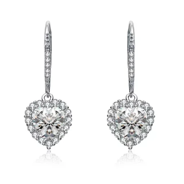 Lab Created Sterling Silver with Clear Cubic Zirconia Heart Pear Drop Dangle Earrings