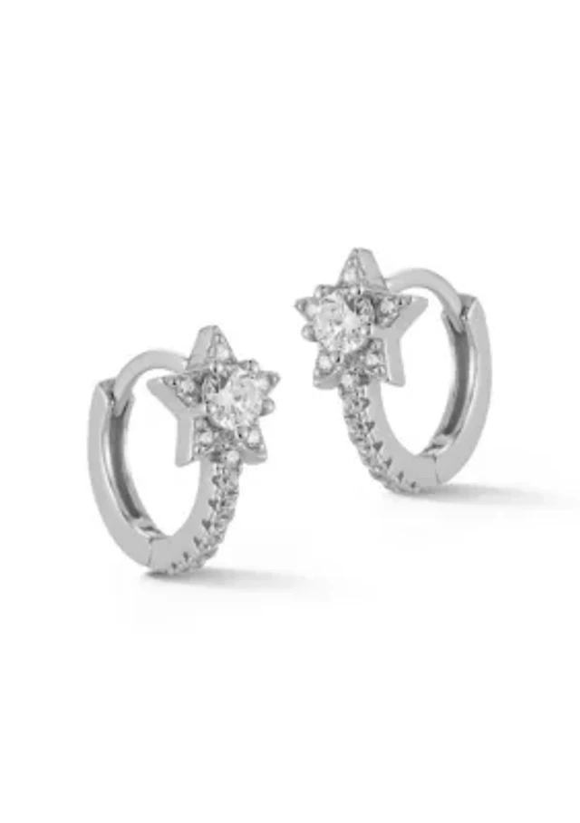 Sterling Silver CZ Star Huggie Hoop Earrings