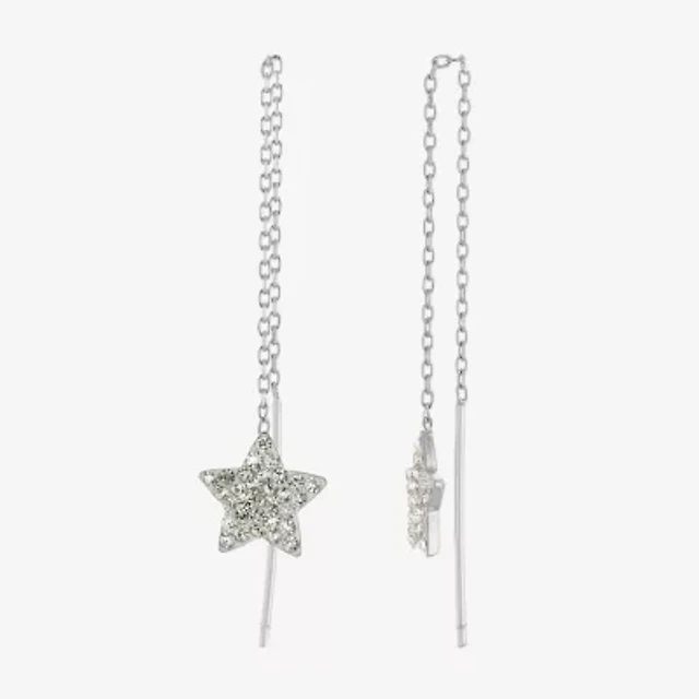 Sparkle Allure Womens Crystal Pure Silver Over Brass Star Drop Earrings