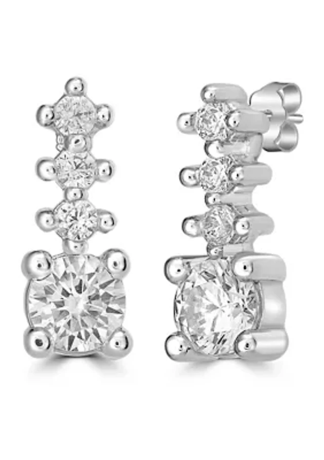 Sterling Silver Cubic Zirconia Celestial Charm Drop Earrings