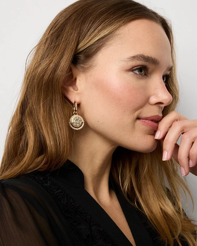 Flat Hoop with Rose Earrings in 10K Tri-Tone Gold