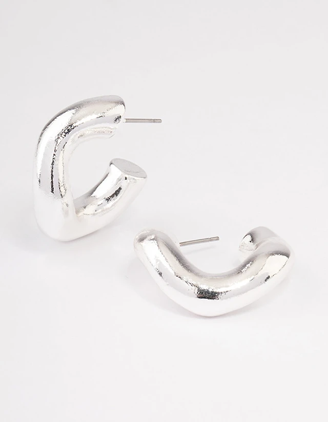 Silver Smooth Thick Hoop Earrings