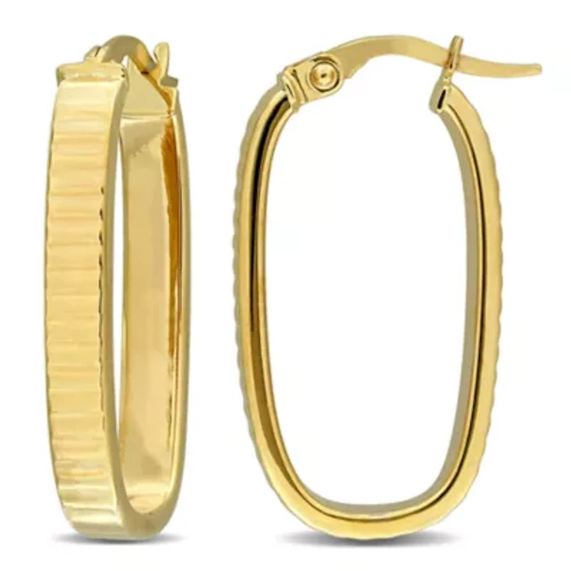 14K Gold Oval Huggie Hoop Earrings