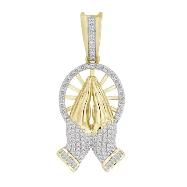 10K Yellow Gold 3/4ct Round/Baguette Diamond Mens Cross Charm