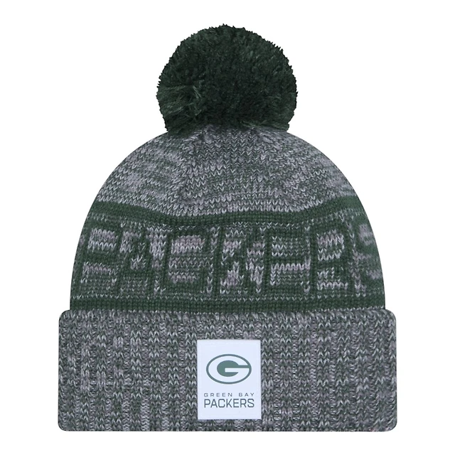 Green Bay Packers Grey 2025 Sideline Alternate New Era Cuffed Beanie Knit Hat with Pom