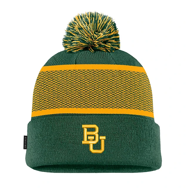 Nike Baylor Bears 2024 Sideline Peak Cuffed Knit Hat with Pom