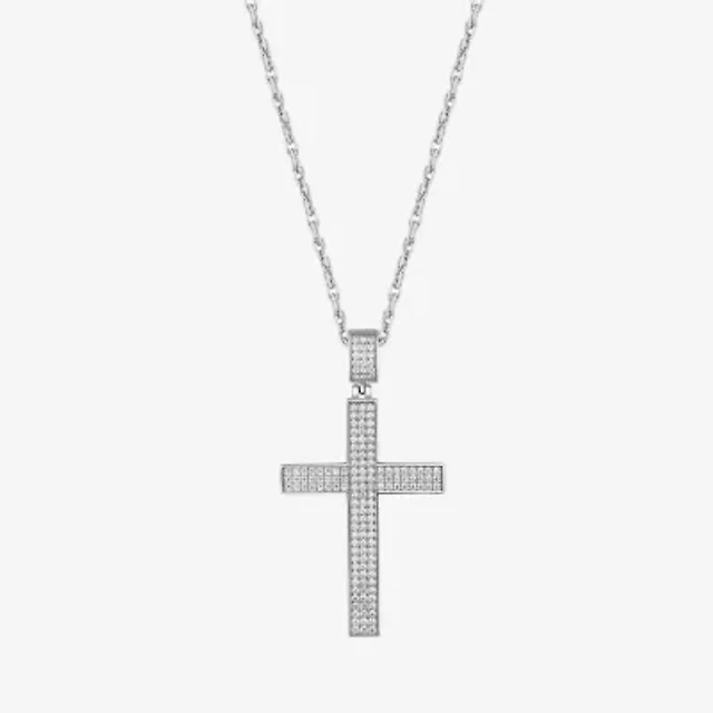 Solid Sterling Silver Large CZ Cross Necklace Charm