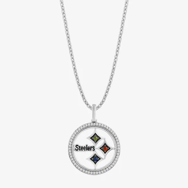 True Fans Fine Jewelry Pittsburgh Steelers Unisex Adult White Cubic Zirconia Sterling Silver 18 Inch Pendant Necklace