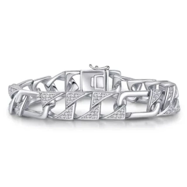 Lab Created Men's Sterling Silver White Gold Plated with Iced Out Cubic Zirconia Miami Cuban Chain Bracelet
