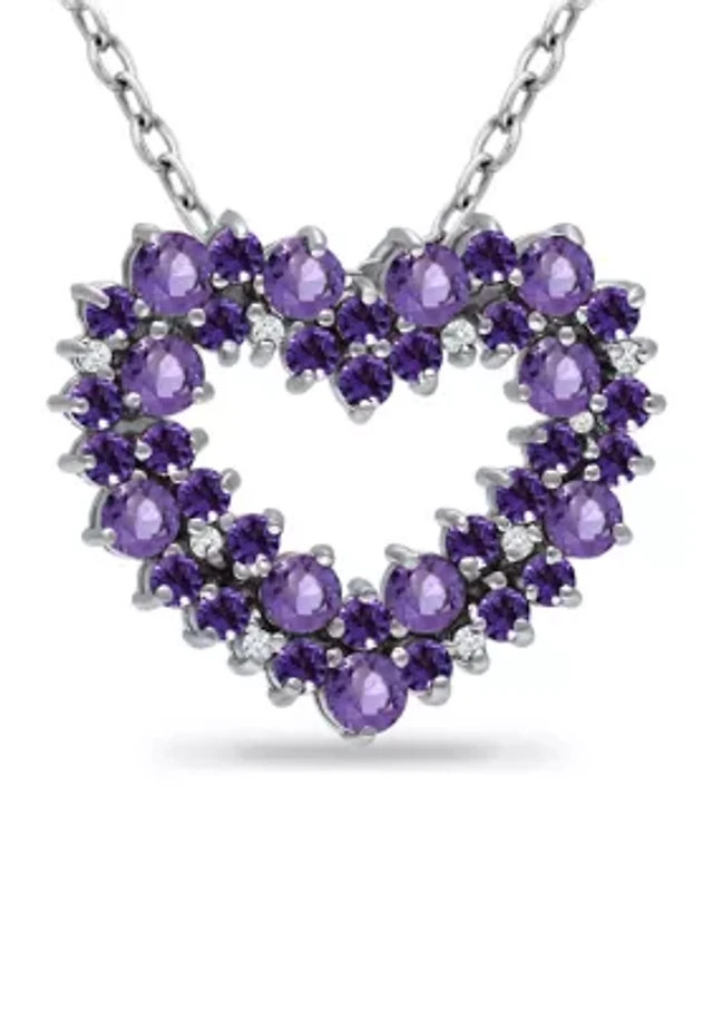 Heart Shape Amethyst and Diamond Accent Pendant Necklace with 18" Cable Chain in Sterling Silver
