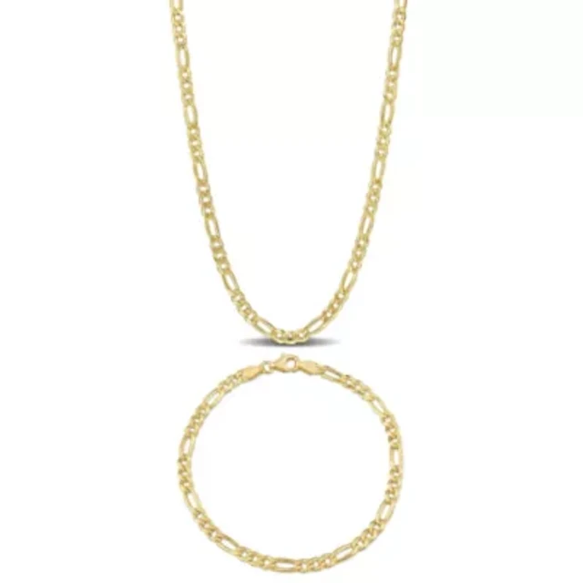 2-Pc Set of Men's 3.8mm Figaro Chain Necklace & Bracelet in Yellow Plated Sterling Silver