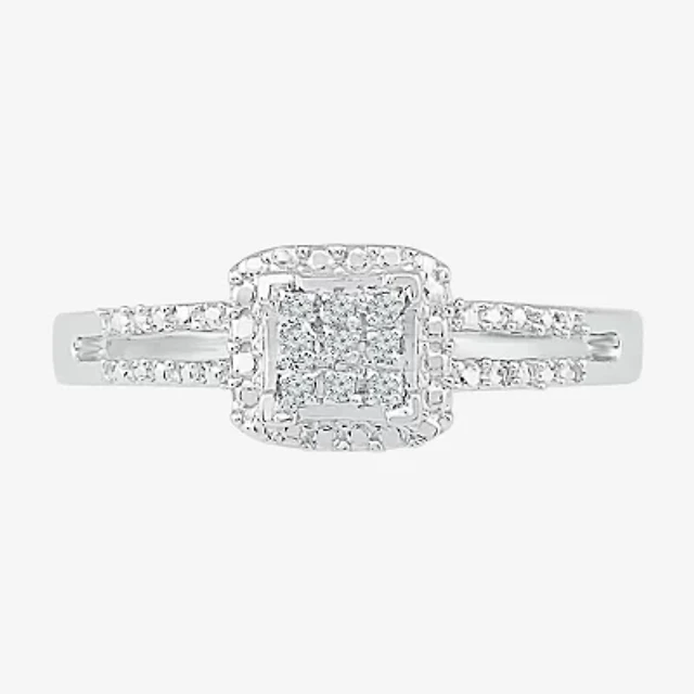 Promise My Love Womens 1/10 CT. T.W. Natural White Diamond Sterling Silver Cushion Ring