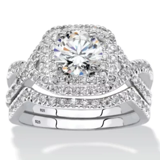 Lab Created Cubic Zirconia Bridal Ring Set Sterling Silver