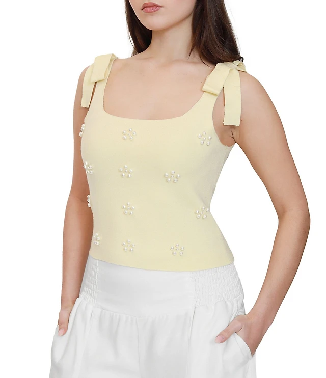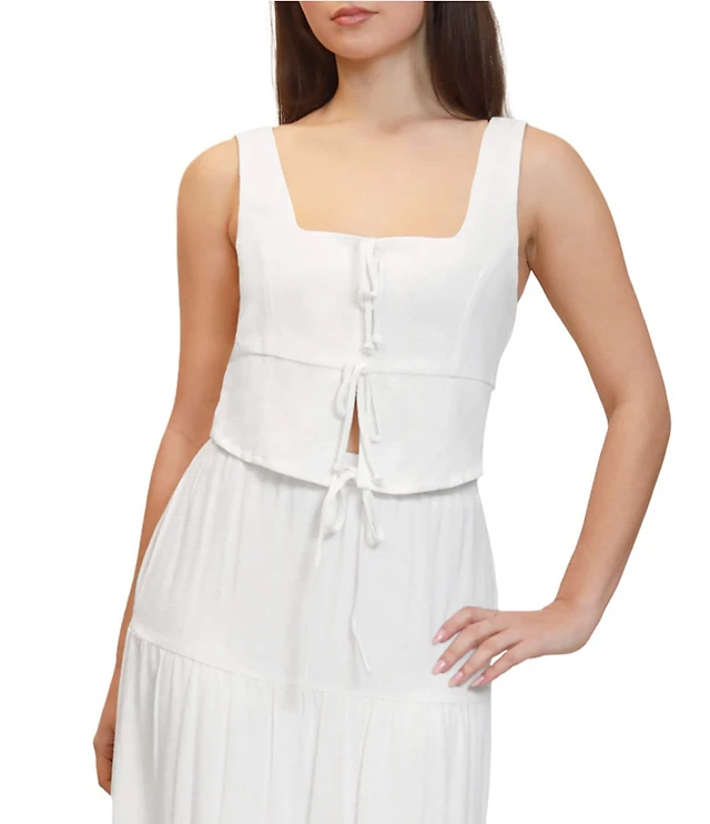 Stevie by Steve Madden Coordinating Square Neck Faux Tie Front Cropped Tank