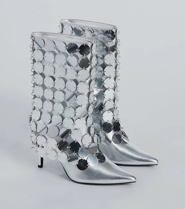 Girl's Night Sequin Fold-Over Stiletto Boots