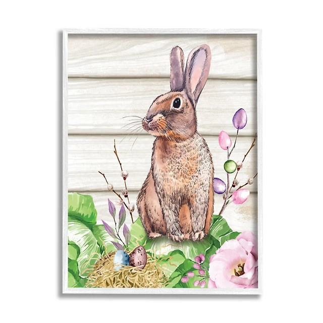 Stupell Industries Sleeping Bunny in Butterfly Garden Wall Art in Black Frame