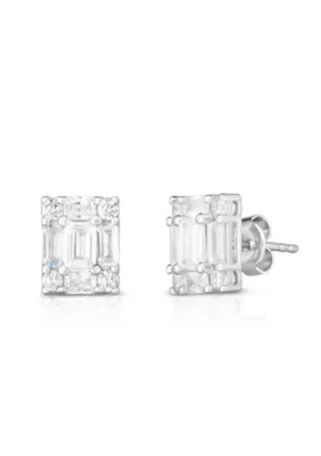Sterling Silver Baguette Cut CZ Stud Earrings